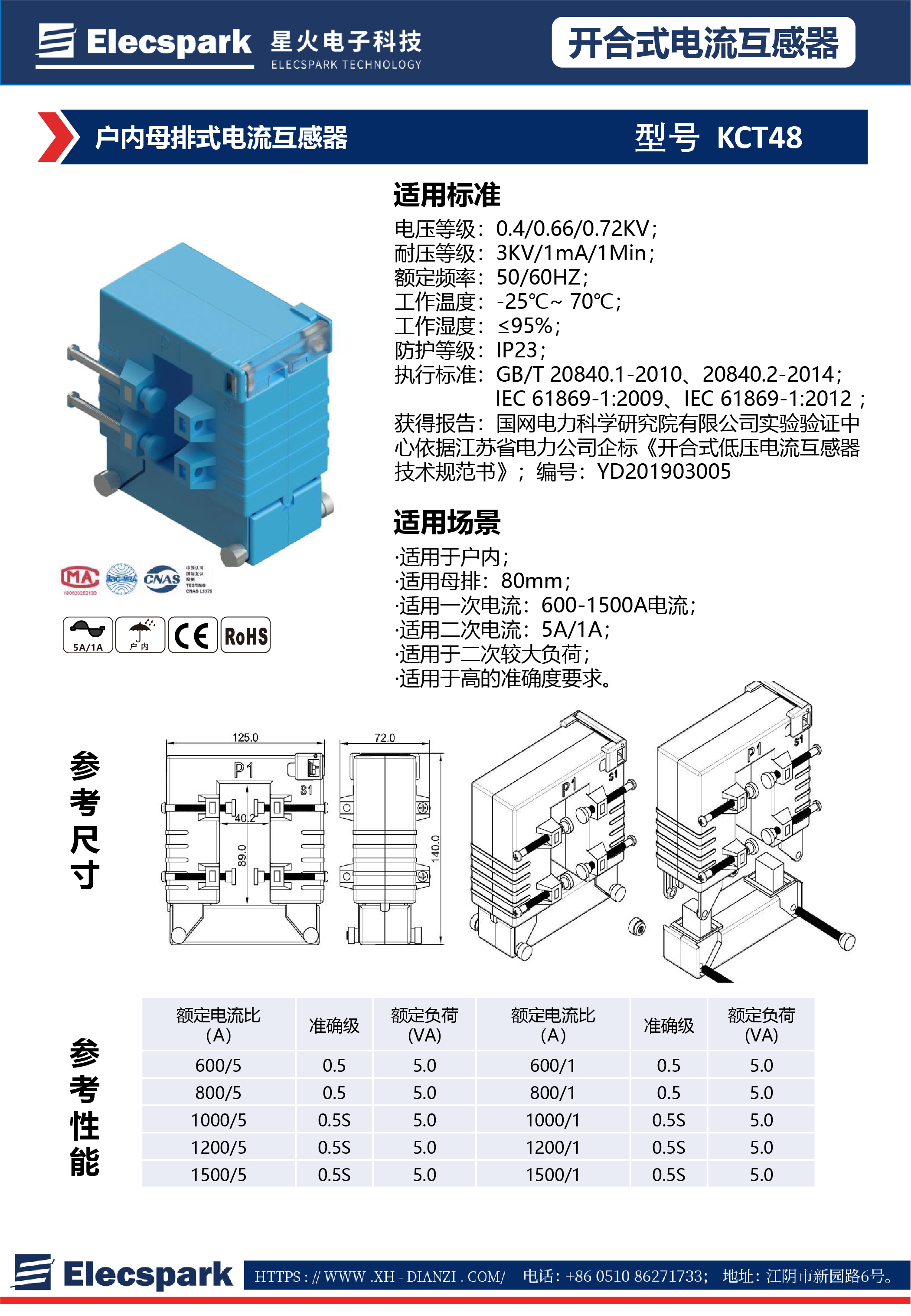 戶內(nèi)母排式電流互感器KCT48