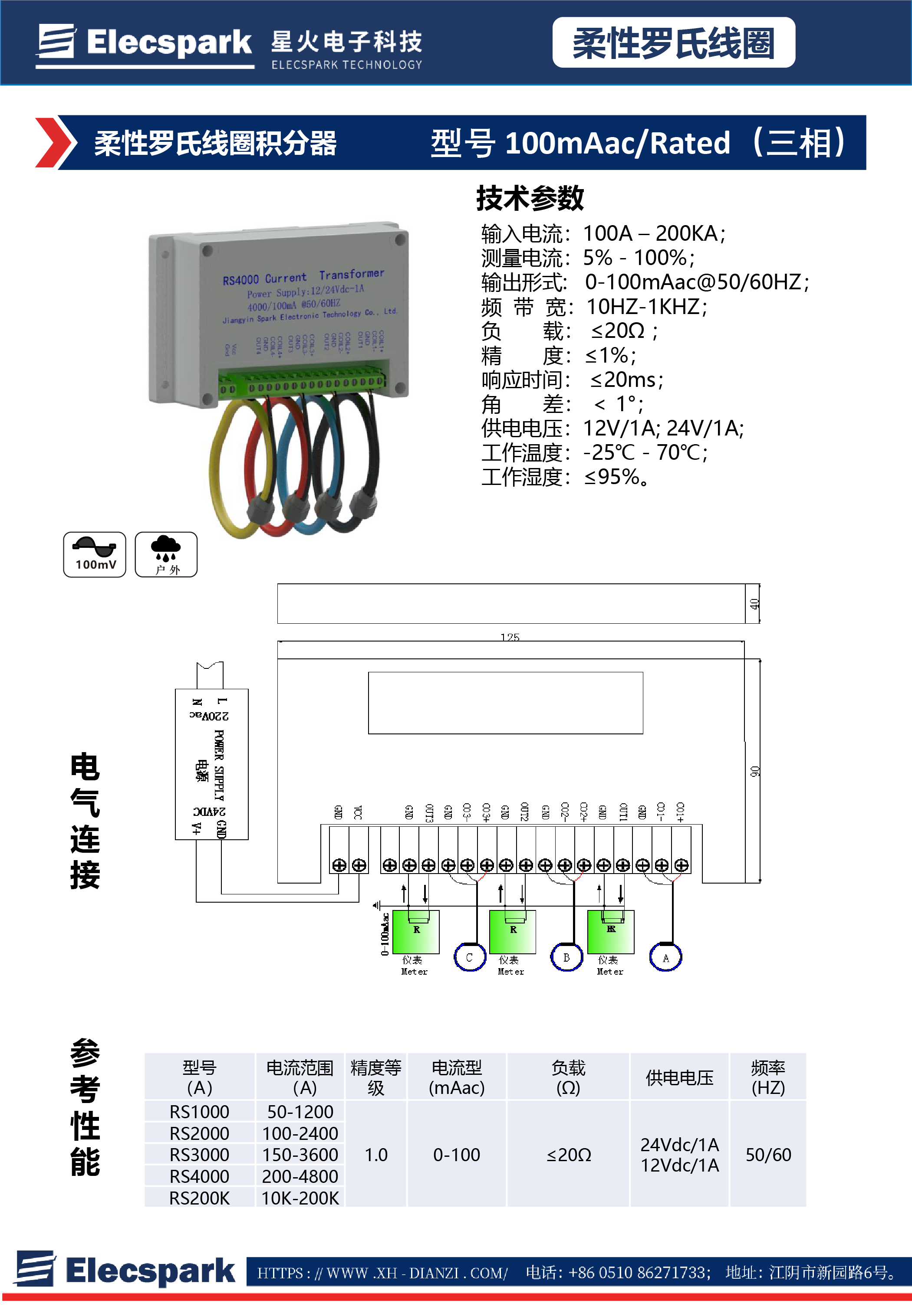 柔性羅氏線圈積分器100mAac/Rated(三相)