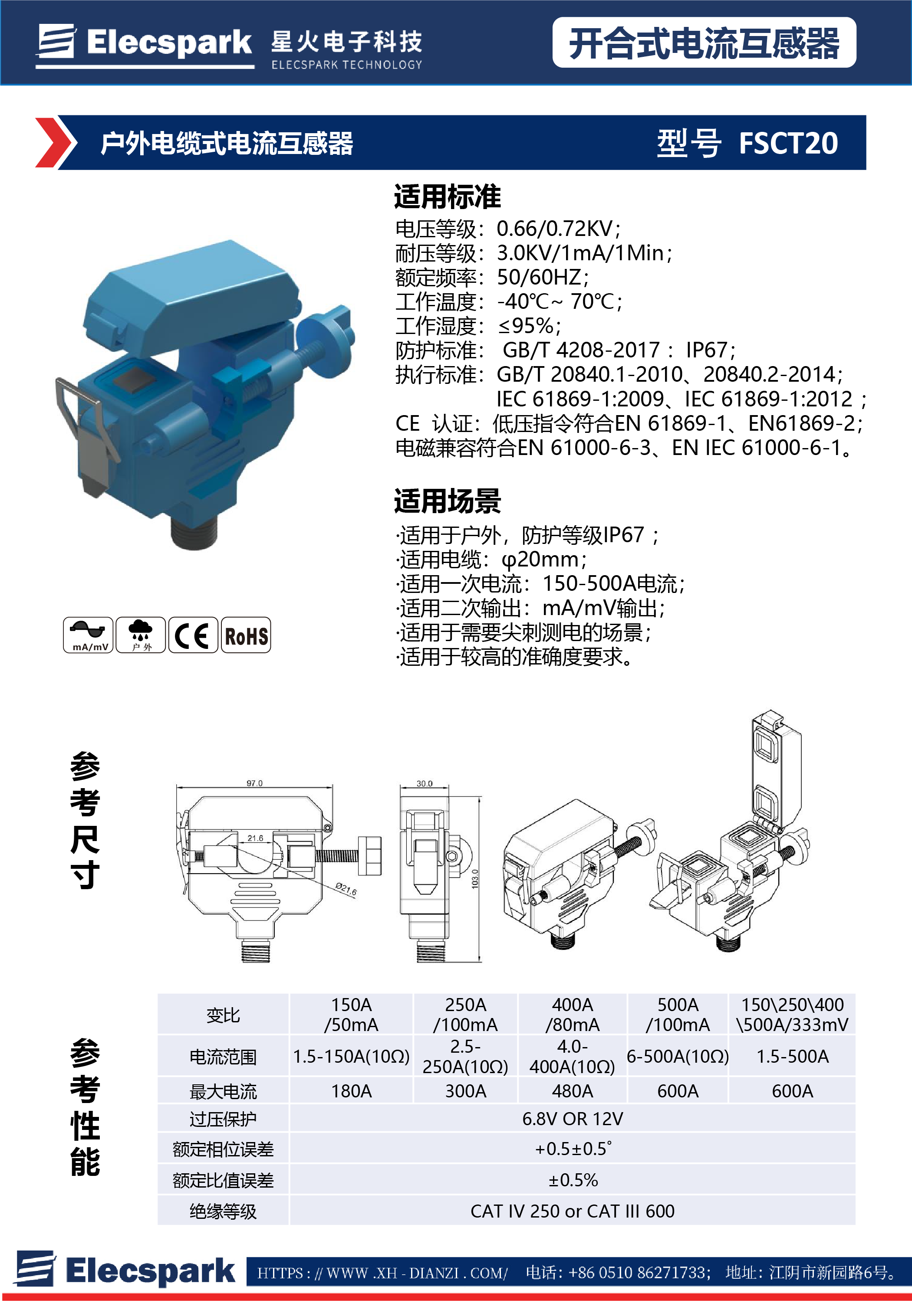 戶外電纜式電流互感器FSCT20 mA級(jí)